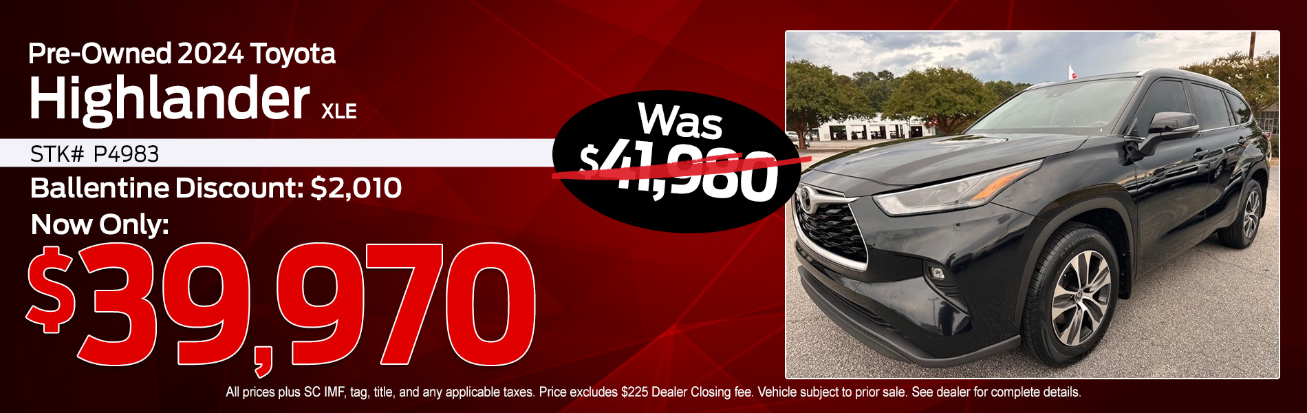 Thanks for visiting Ballentine Toyota! Check out our current Price Drops below! Stop by today to explore these and other offers we have available!