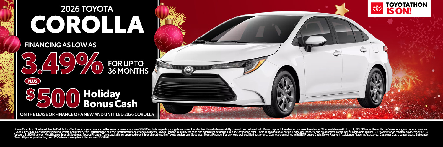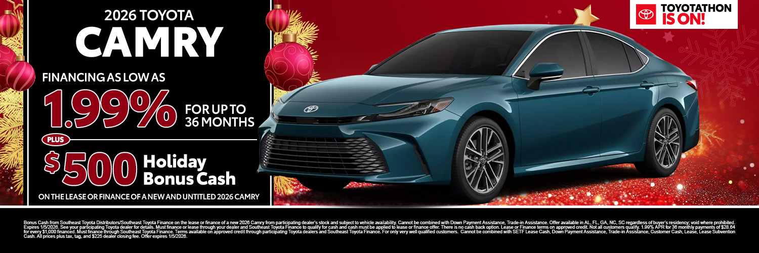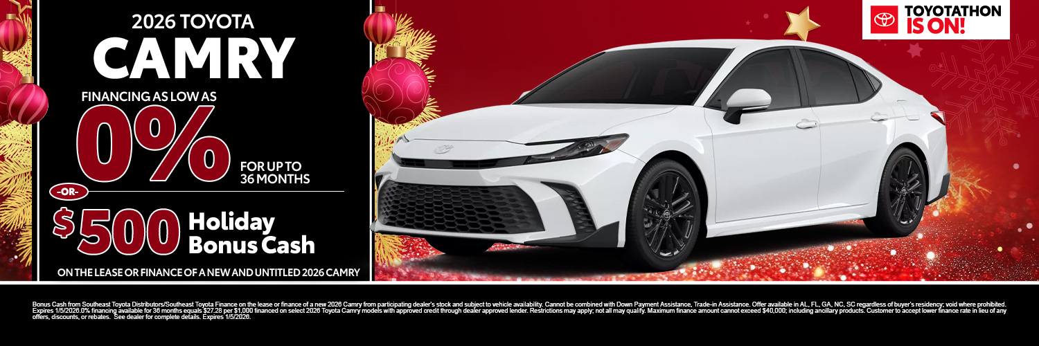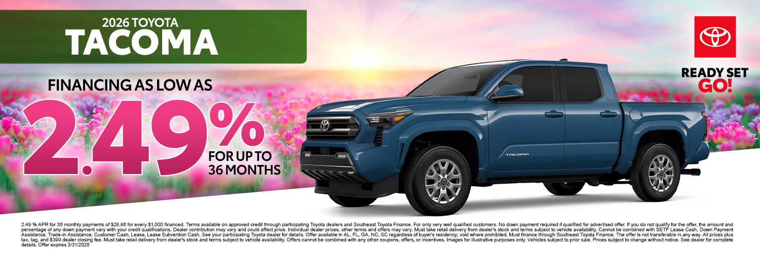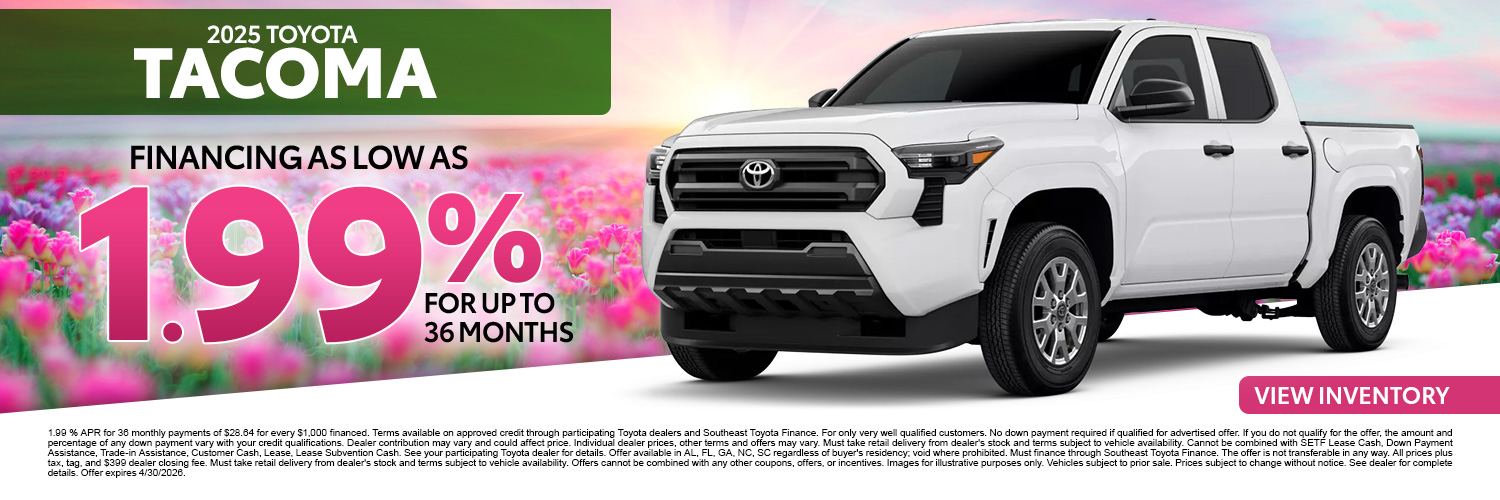 Thanks for visiting Ballentine Toyota, a premier South Carolina Toyota dealer! As a premier dealer, we have a huge selection of vehicles to choose from. The vehicles below are part of our monthly sales event. Stop by today to explore these and other offers we have available.
