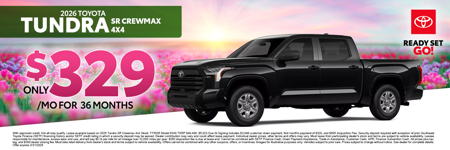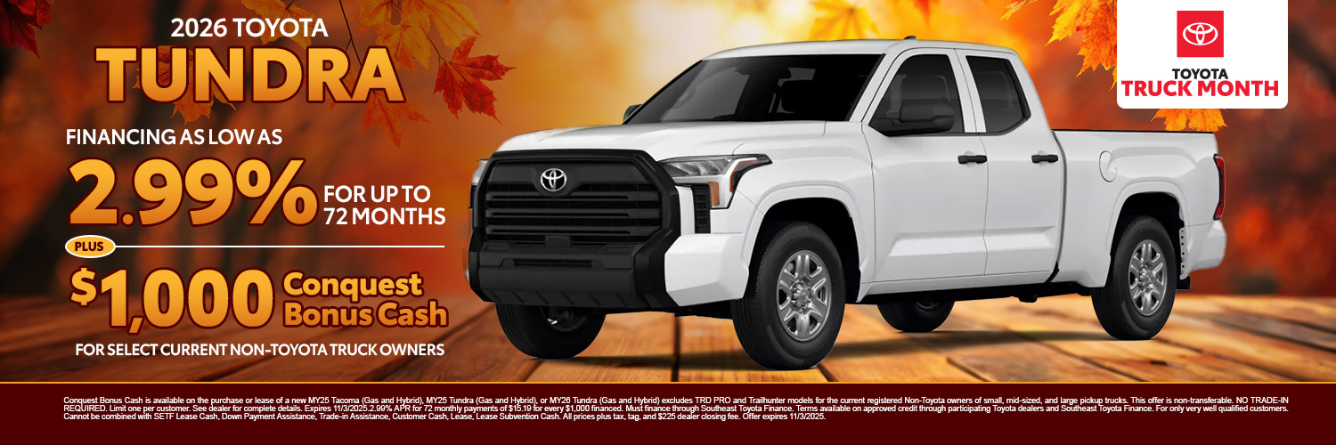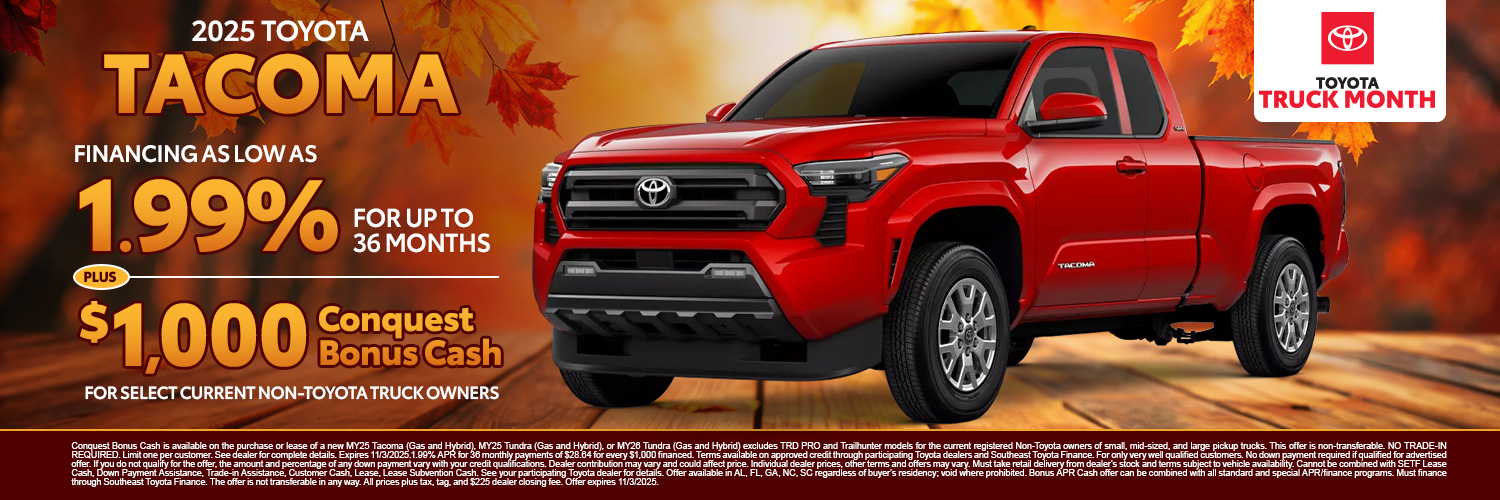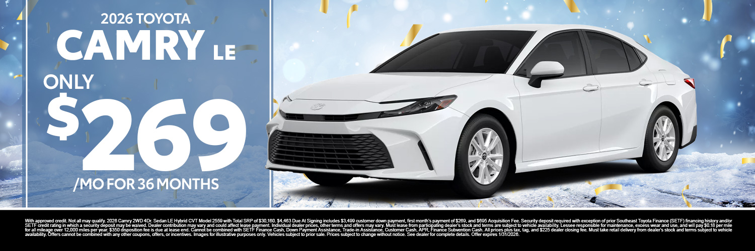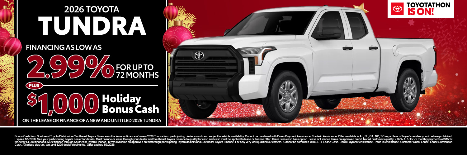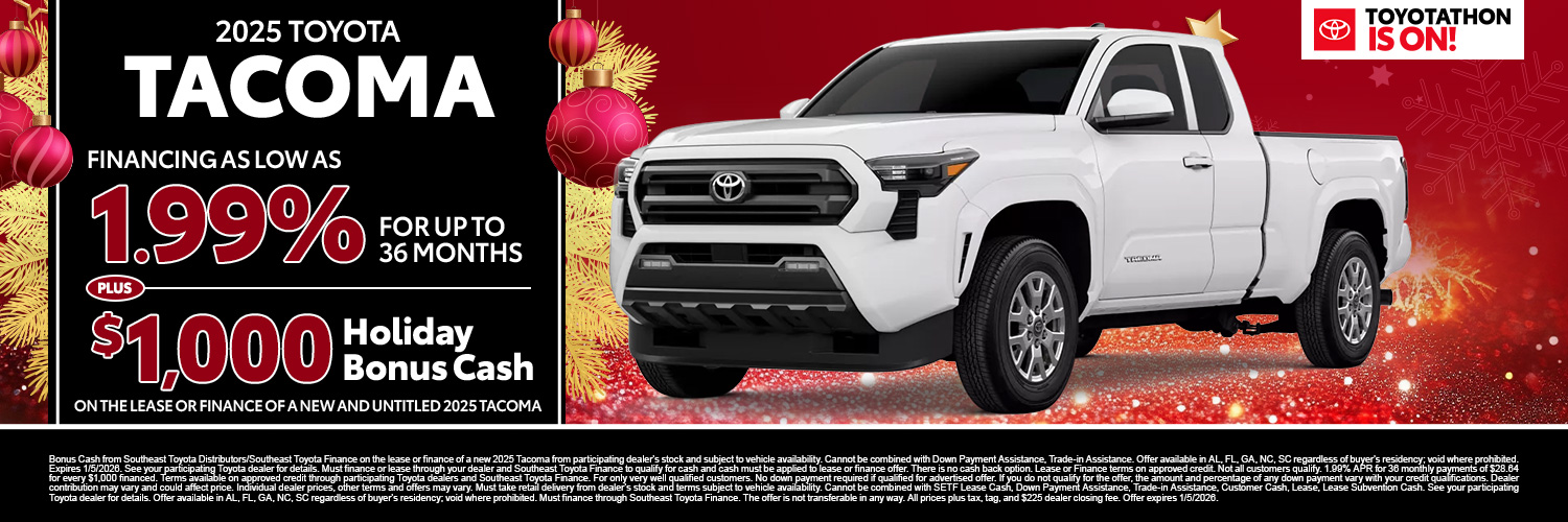 Thanks for visiting Ballentine Toyota, a premier South Carolina Toyota dealer! As a premier dealer, we have a huge selection of vehicles to choose from. The vehicles below are part of our monthly sales event. Stop by today to explore these and other offers we have available.