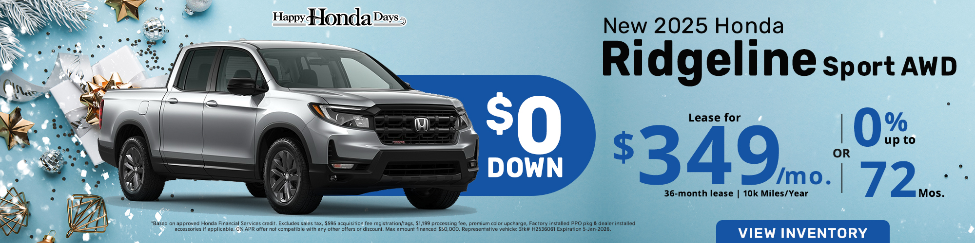 Thanks for visiting Joyce Koons Honda your premier Virginia Honda dealer! As a premier Honda dealer, we have a huge selection of new and used vehicles from which to choose. The vehicles below are part of our monthly sales event. Stop by today to check out these and other offers we have available.