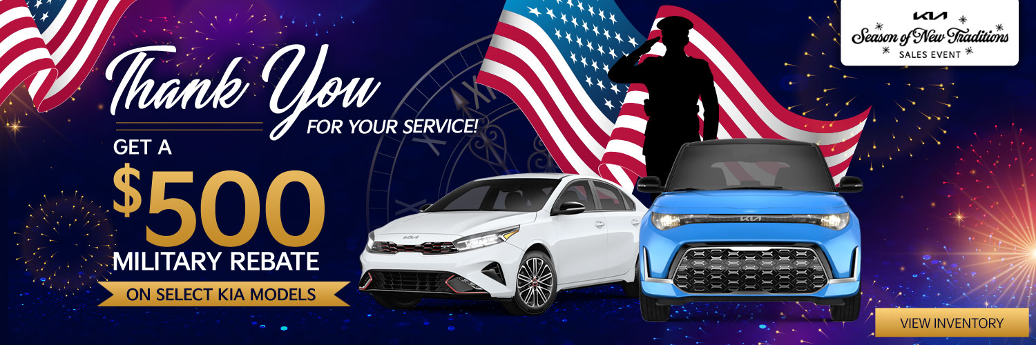 To be eligible for this program, Customers must be members in Active Duty, honorably discharged from, retired from, or on disability with the United States Armed Forces (including Reservists). Additionally, the spouse of those individuals is also eligible for this program. The eligible customer must be able to provide one of the following: a current Earnings Statement, a copy of honorable discharge papers or certificate, a bank statement indicating pension or disability earnings from the United States Armed Forces or an official document indicating future pension eligibility. This includes those that have "national" status from another country and are serving in the United States military. See Dealer for complete details and qualifying models and trims. Offer valid through 12/31/2025.