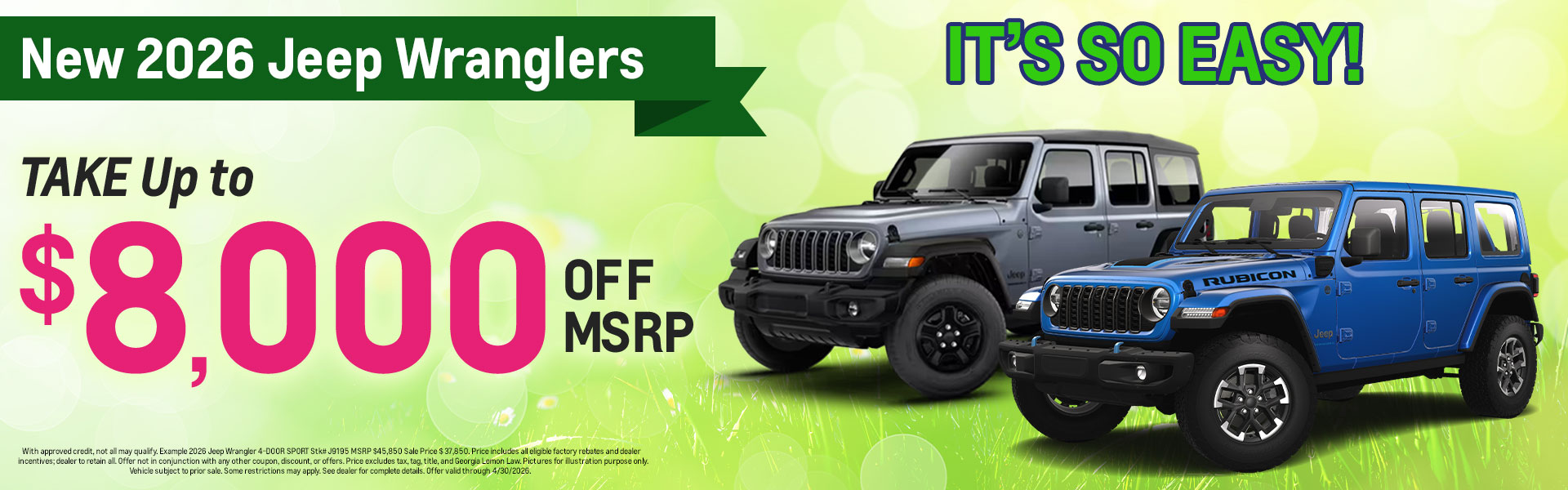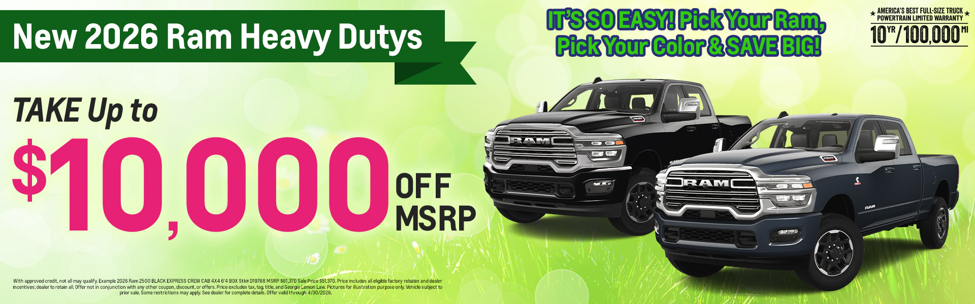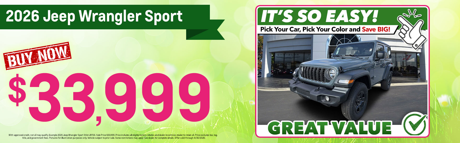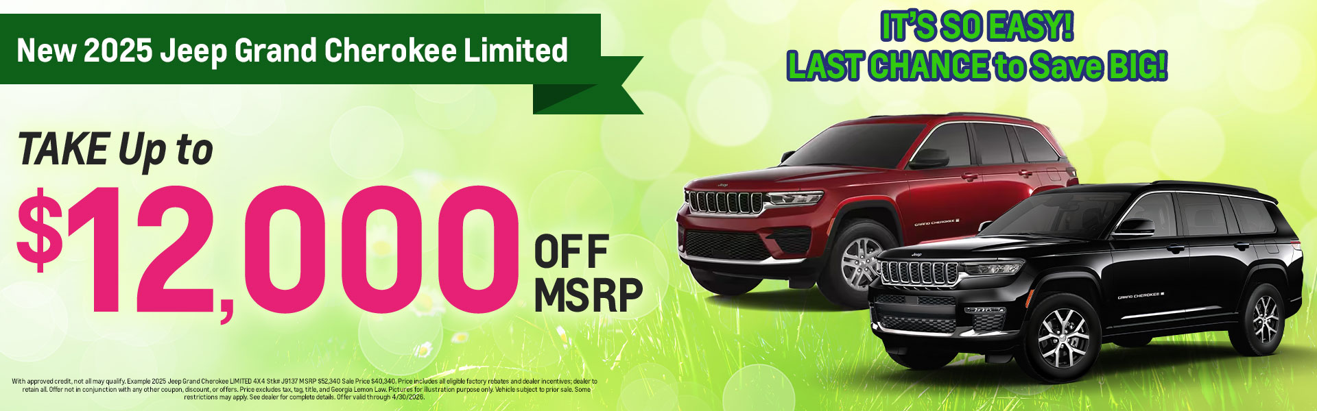Thanks for visiting Mall of Georgia Chrysler Dodge Jeep Ram, a premier Buford CDJR dealer! As a premier CDJR dealer, we have a huge selection of new and used Chryslers, Dodges, Jeeps, and RAMS from which to choose. The vehicles below are part of our monthly sales event. Stop by today to check out these and other offers we have available.