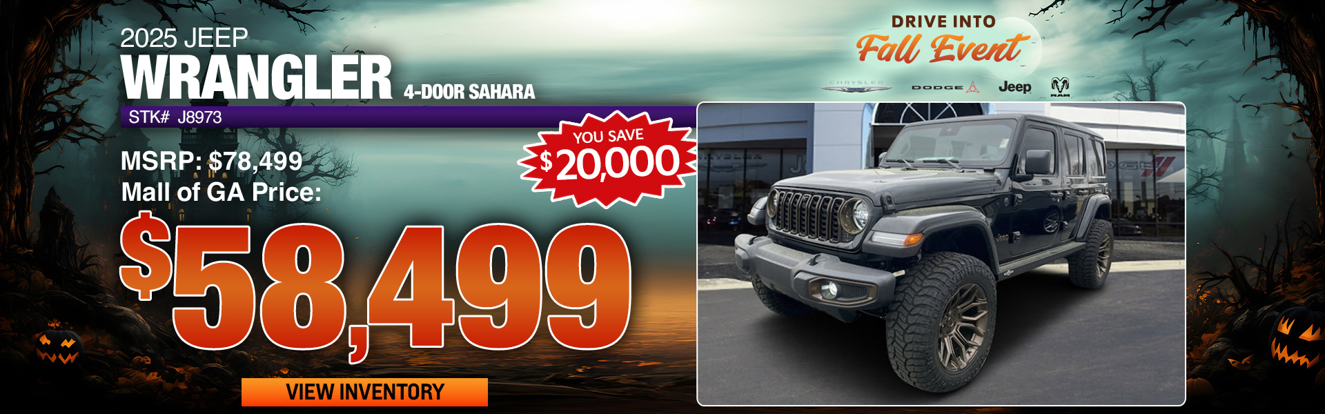 Thanks for visiting Mall of Georgia Chrysler Dodge Jeep Ram, a premier Buford CDJR dealer! As a premier CDJR dealer, we have a huge selection of new and used vehicles from which to choose. The vehicles below are part of our monthly sales event. Stop by today to check out these and other offers we have available.