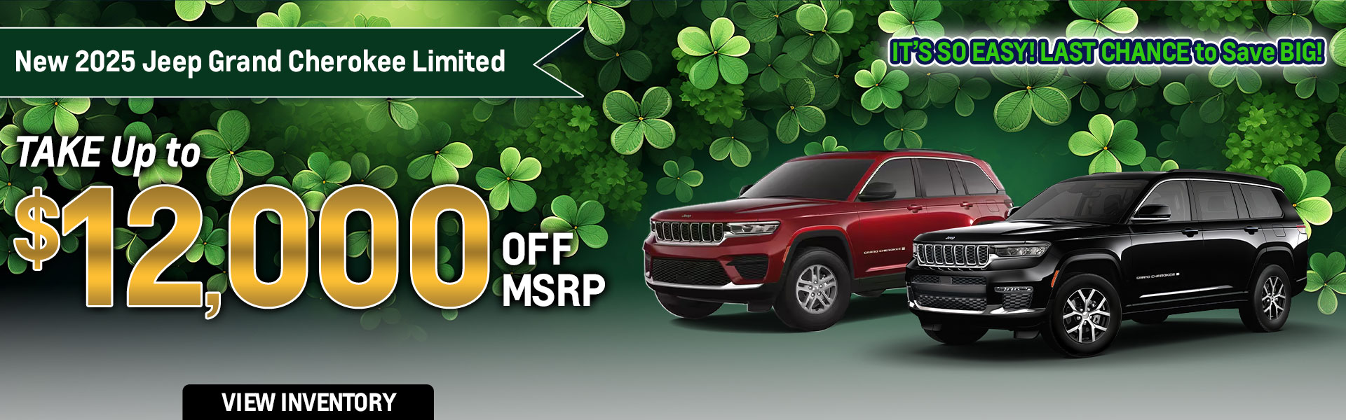 With approved credit, not all may qualify. Example 2025 Jeep Grand Cherokee LIMITED 4X4 Stk# J9137 MSRP $52,340 Sale Price $40,340. Price includes all eligible factory rebates and dealer incentives; dealer to retain all. Offer not in conjunction with any other coupon, discount, or offers. Price excludes tax, tag, title, and Georgia Lemon Law. Pictures for illustration purpose only. Vehicle subject to prior sale. Some restrictions may apply. See dealer for complete details. Offer valid through 03/31/2026.
