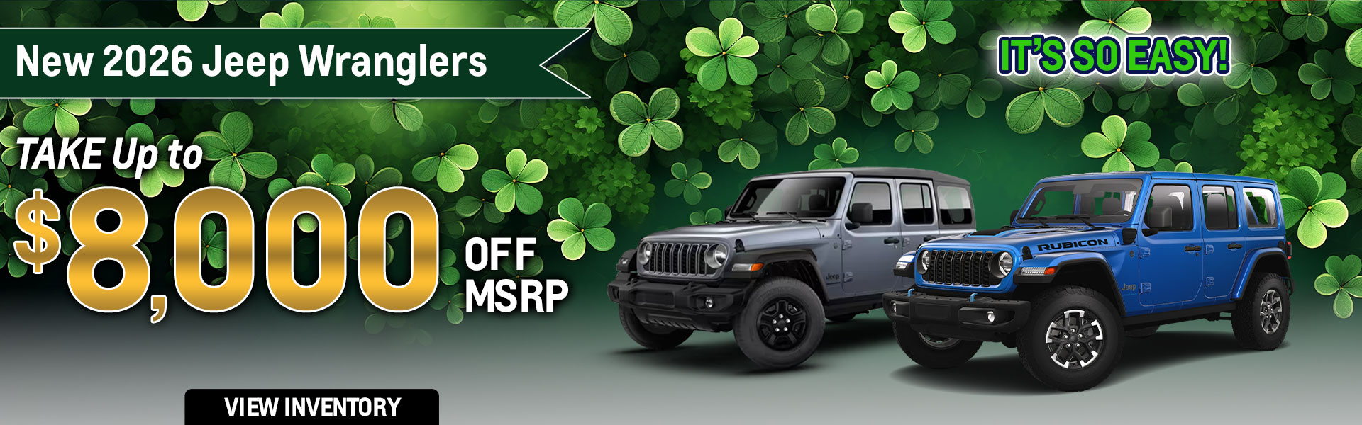 With approved credit, not all may qualify. Example 2026 Jeep Wrangler 4-DOOR SPORT Stk# J9195 MSRP $45,850 Sale Price $ 37,850. Price includes all eligible factory rebates and dealer incentives; dealer to retain all. Offer not in conjunction with any other coupon, discount, or offers. Price excludes tax, tag, title, and Georgia Lemon Law. Pictures for illustration purpose only. Vehicle subject to prior sale. Some restrictions may apply. See dealer for complete details. Offer valid through 03/31/2026.