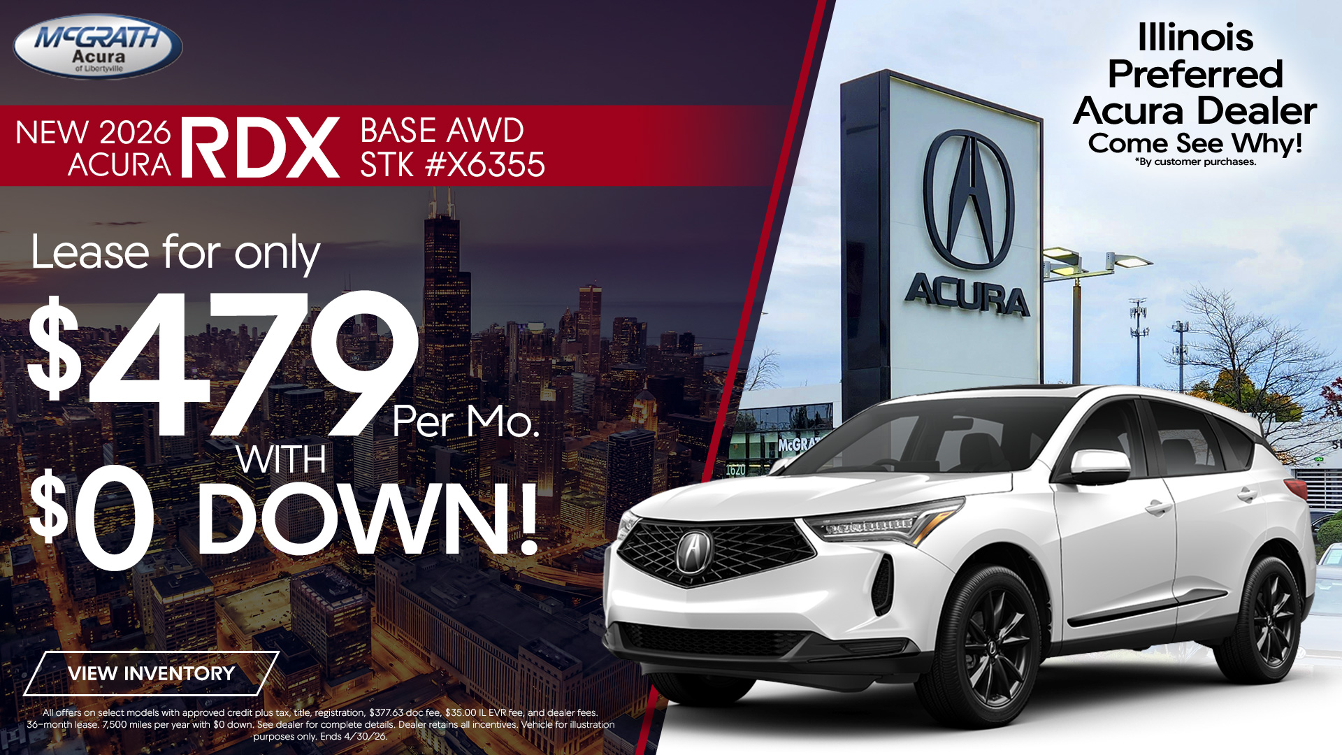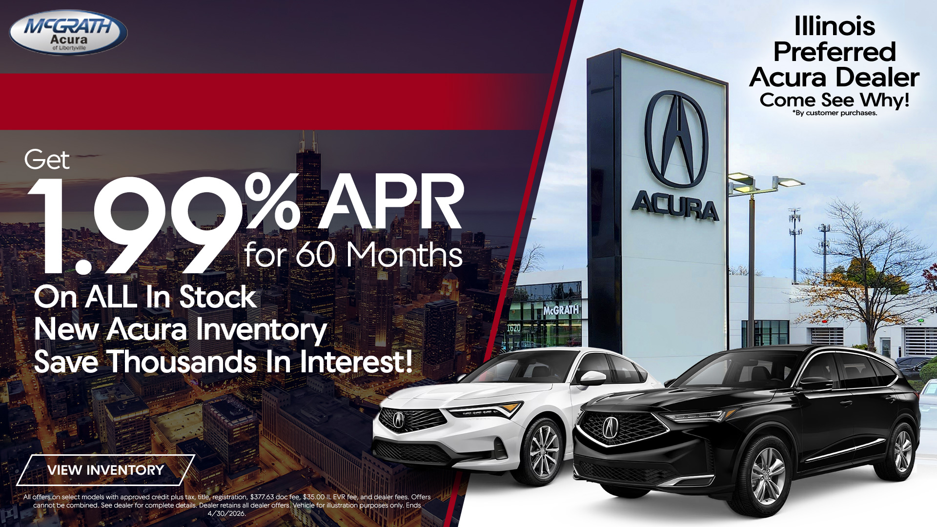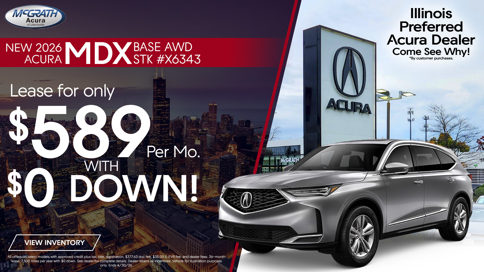 Thank you for visiting McGrath Acura of Libertyville! We appreciate your interest in our dealership and invite you to explore our current specials. With a huge selection of new and used vehicles, we have something for everyone. Stop by today to check out these and other fantastic offers. We look forward to helping you find the perfect vehicle!