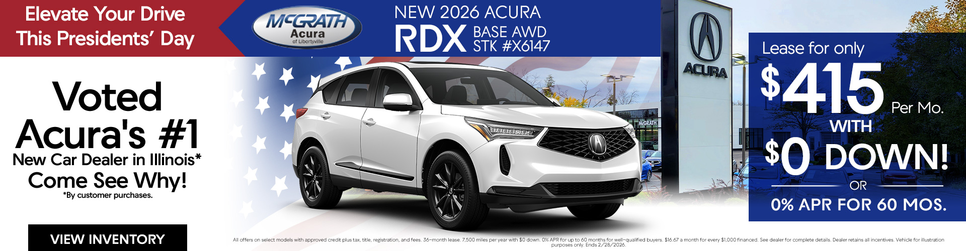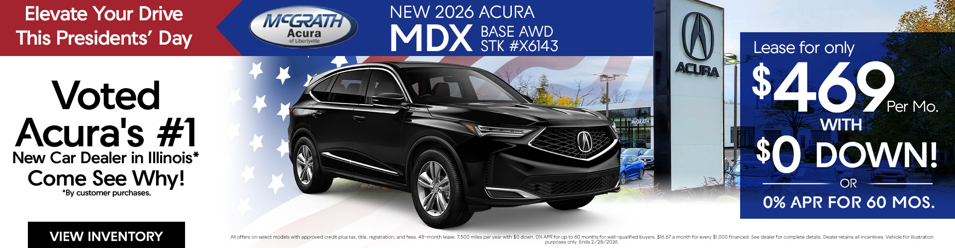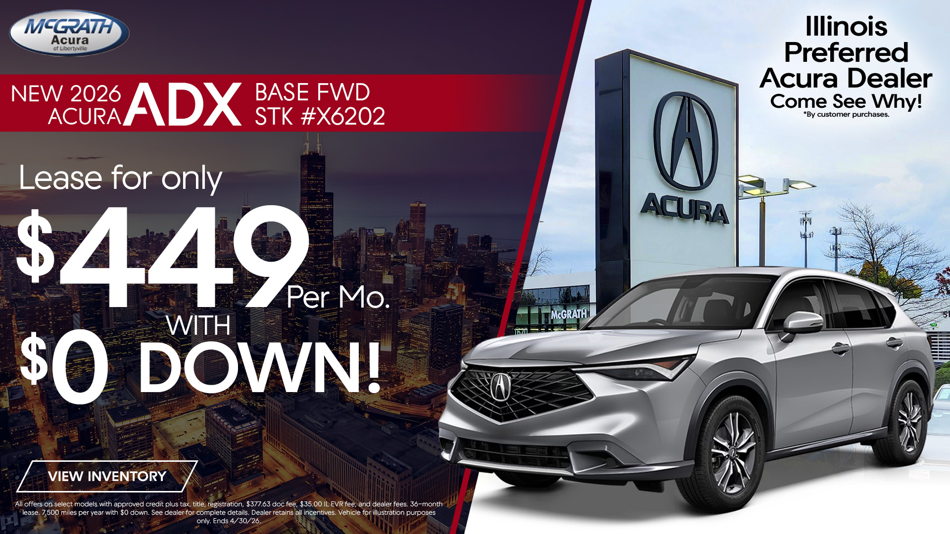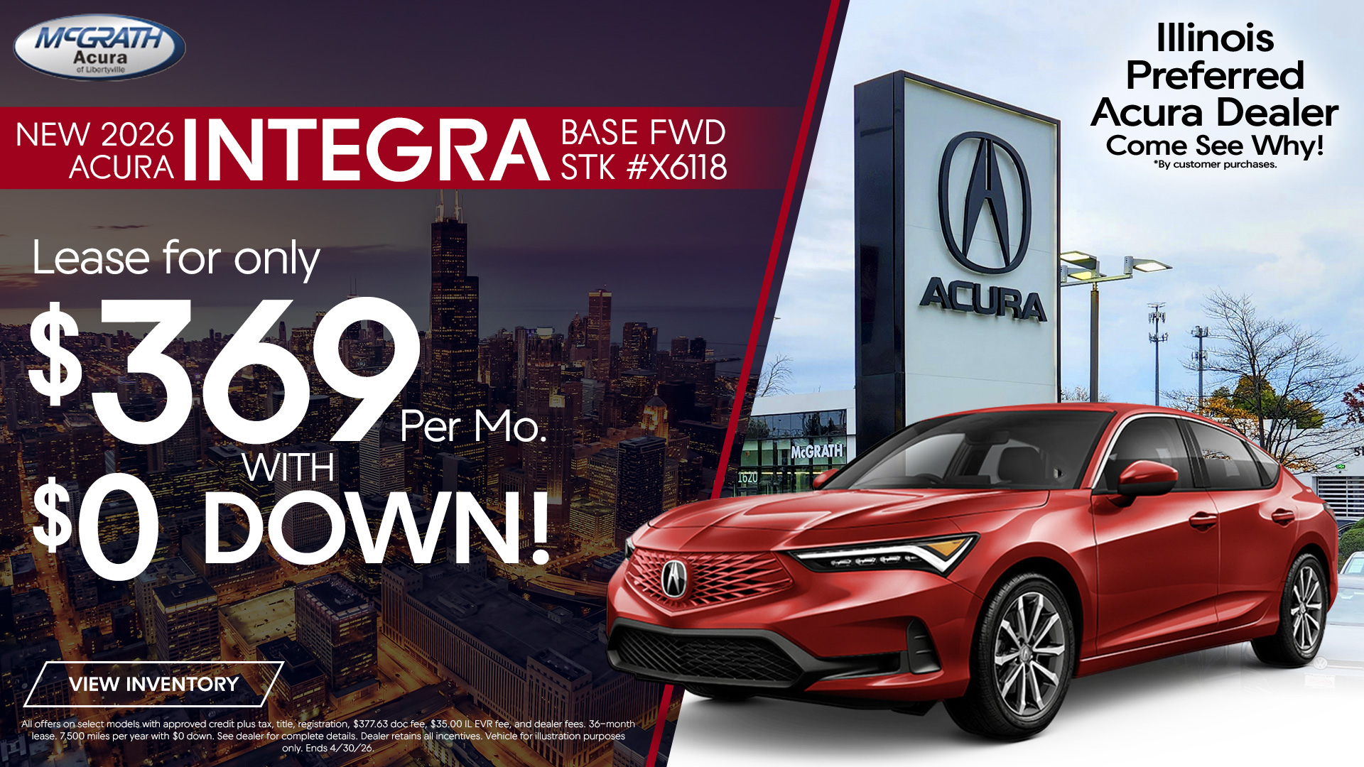 Thank you for visiting McGrath Acura of Libertyville! We appreciate your interest in our dealership and invite you to explore our current specials. With a huge selection of new and used vehicles, we have something for everyone. Stop by today to check out these and other fantastic offers. We look forward to helping you find the perfect vehicle!