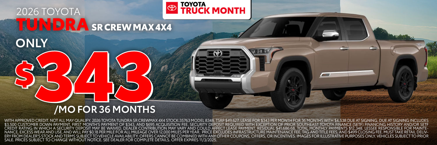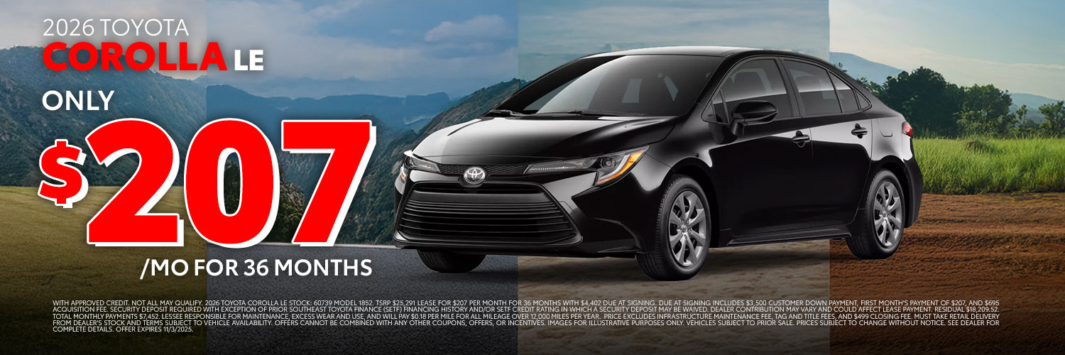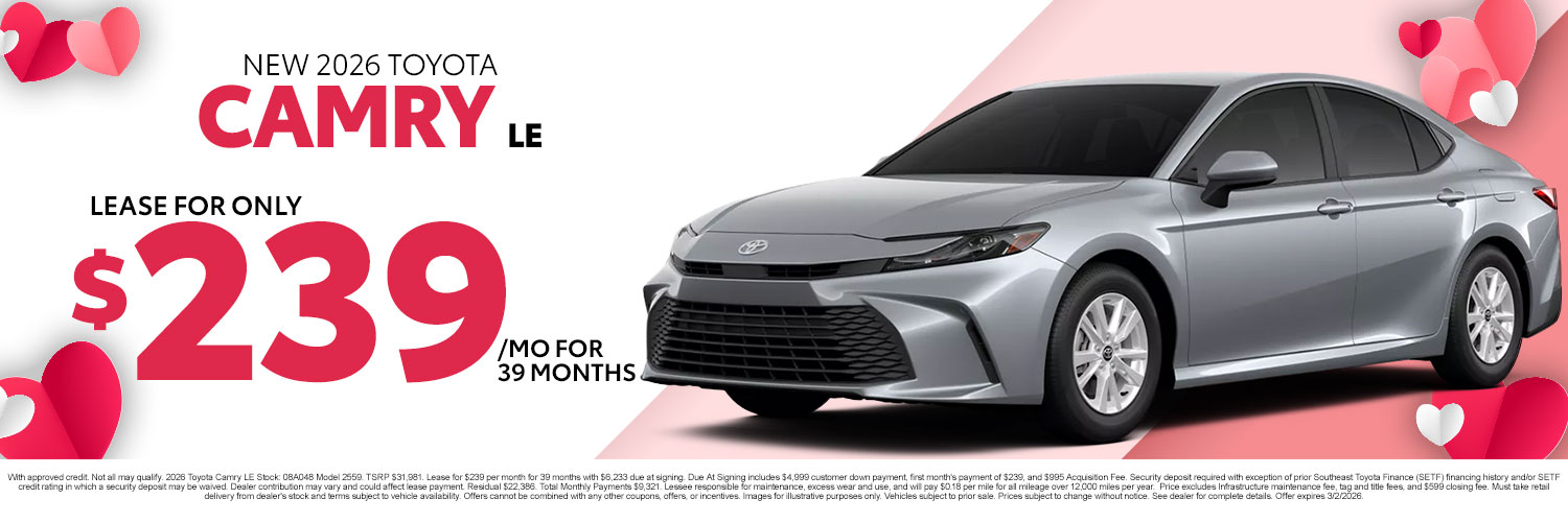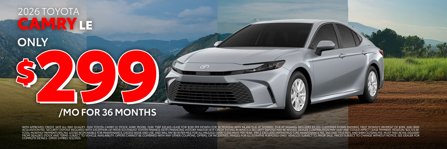 Thanks for visiting Stokes Toyota Hilton Head, a premier South Carolina Toyota dealership! As a premier Toyota dealer, we have a huge selection of vehicles from which to choose. The vehicles below are part of our monthly sales event. Stop by today to check out these and other offers we have available.